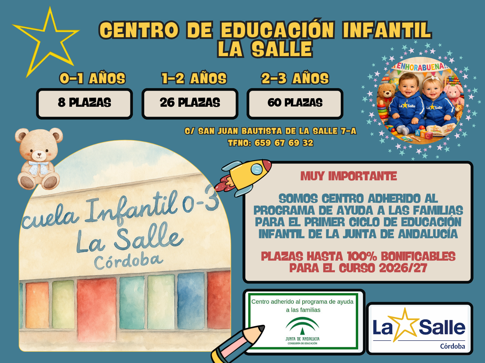 Nuestro Primer Ciclo de Educación Infantil (0–3 años) se ha adherido al Programa de Ayuda a las Familias de la Junta de Andalucía, un paso significativo que reafirma nuestro firme compromiso con una educación accesible, de calidad y verdaderamente orientada al servicio de las familias.